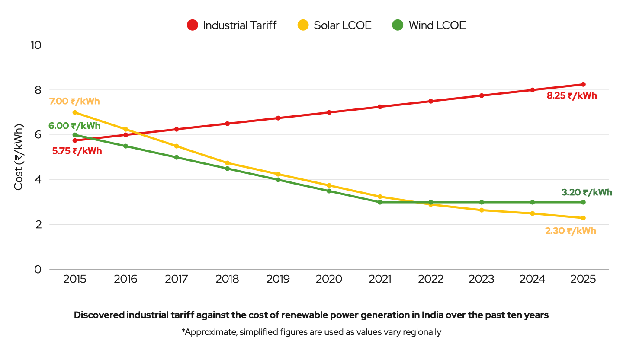 Over the past decade, India’s commercial and industrial (C&I) power consumers have been stuck on a treadmill of rising electricity bills—paying more for less control. While they’ve stayed dependent on state DISCOMs and inflexible power purchase agreements (PPAs), the ground beneath the energy sector has shifted dramatically.